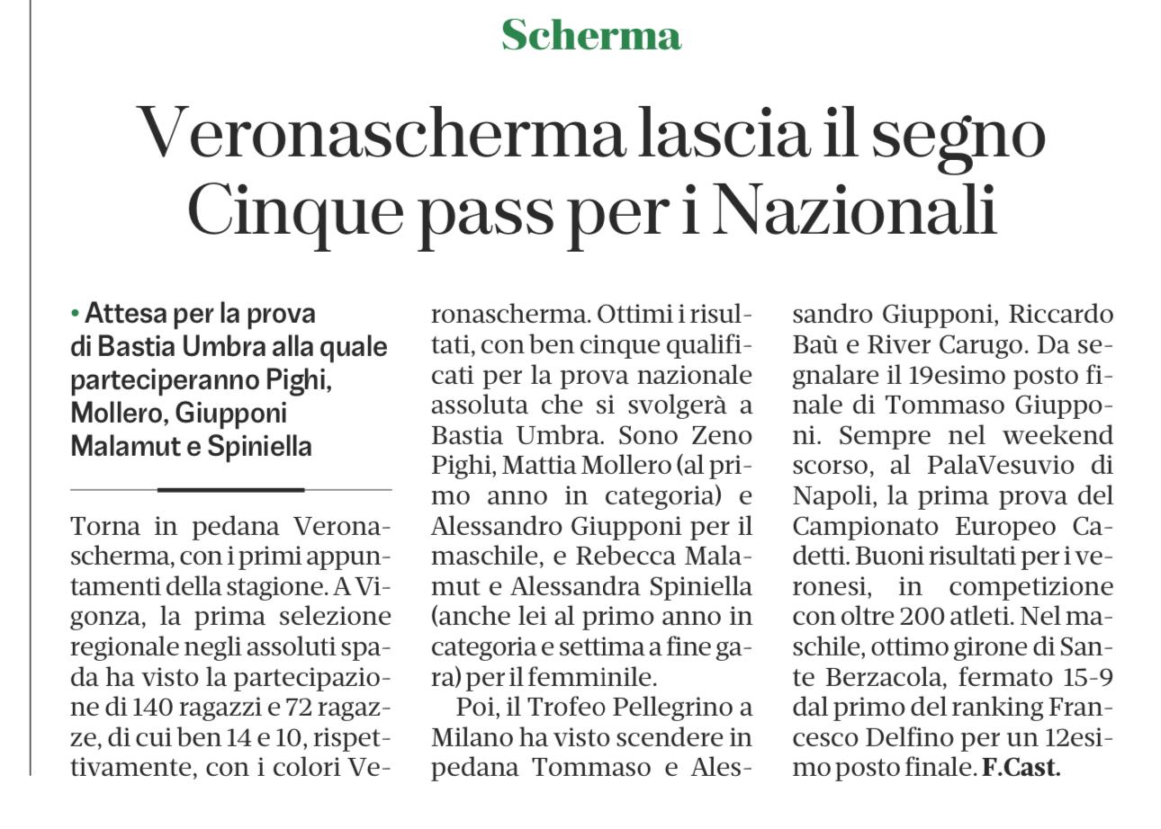 L’Arena – 11 ottobre 2024 – Partita la nuova stagione