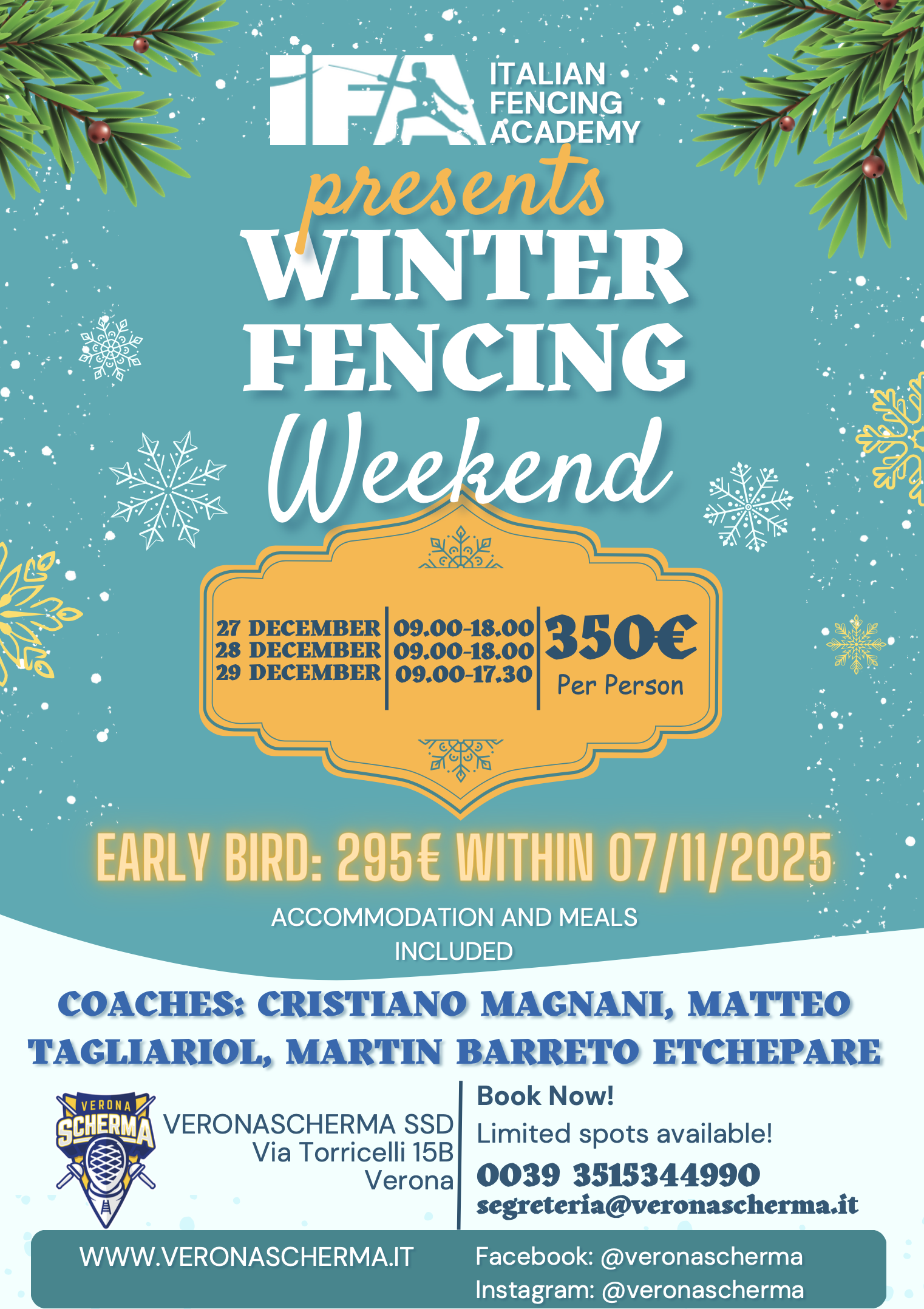 Here is the second Winter Camp 2025 organized by our Italian Fencing Academy group which will be held from 27th to 29th December 2025 to deepen the art of the sword.