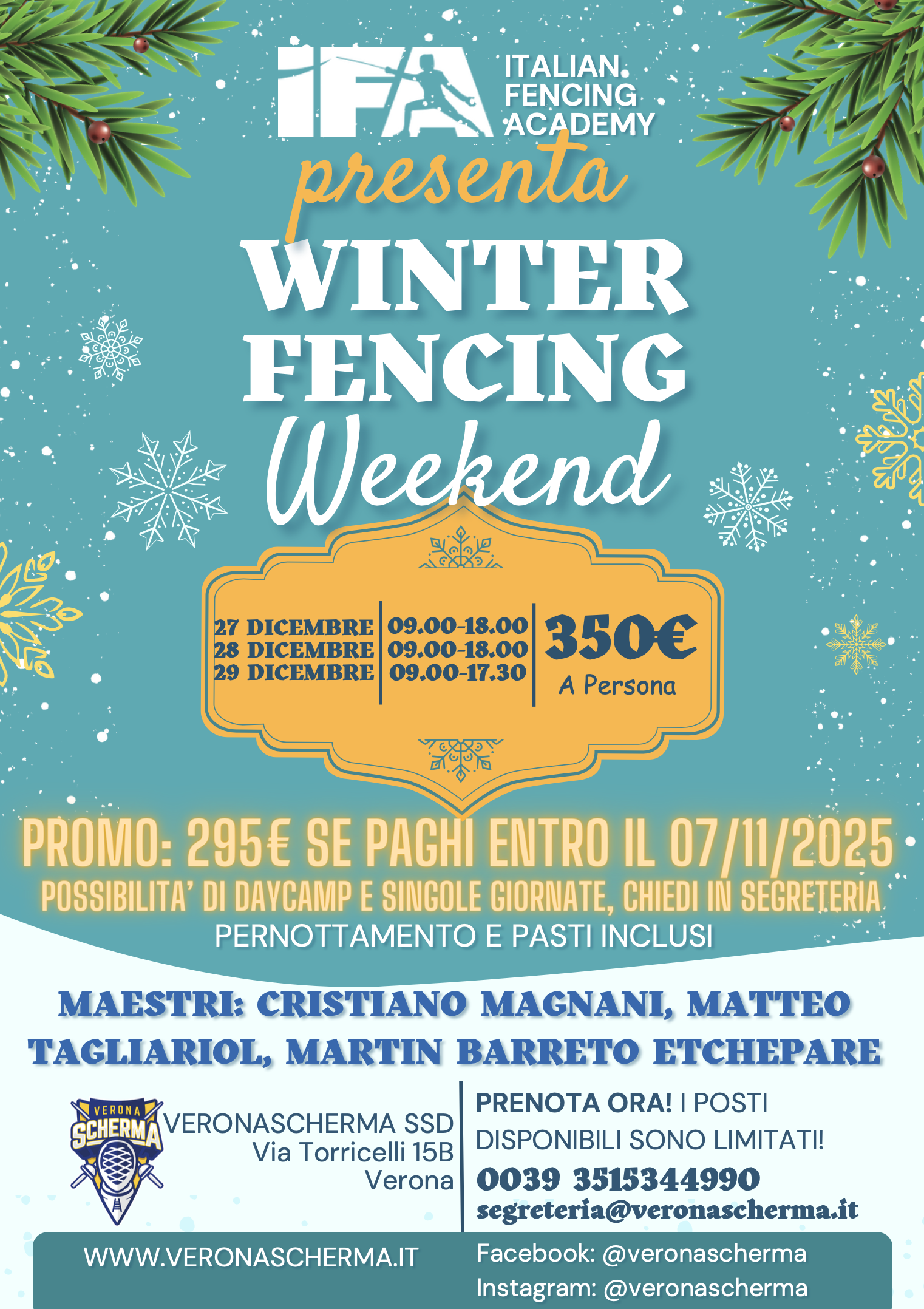 Terzo Winter Camp 2025 organizzato dal nostro gruppo Italian Fencing Academy che si terrà dal 27 al 29 dicembre 2025 per approfondire l’arte della spada.